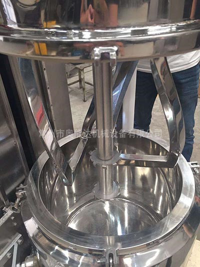 行星分散混合机有高速、低速、活动刮板作搅拌、剪切、刮壁、溶解用。低速运转的搅拌锚使物料在密 闭容器内上下翻动、剪切和混合,高速运转的齿形分散盘与混合的物料产生强烈的碰击和剪切,随着搅拌锚的旋转,行星架上的活动刮刀随着旋转,把釜体上的物料完全刮掉,使聚集物完全、彻底地达到混合、分散、溶解的要求。在其高低速的不同作用下,使物料能够达到均匀的混合和分散。