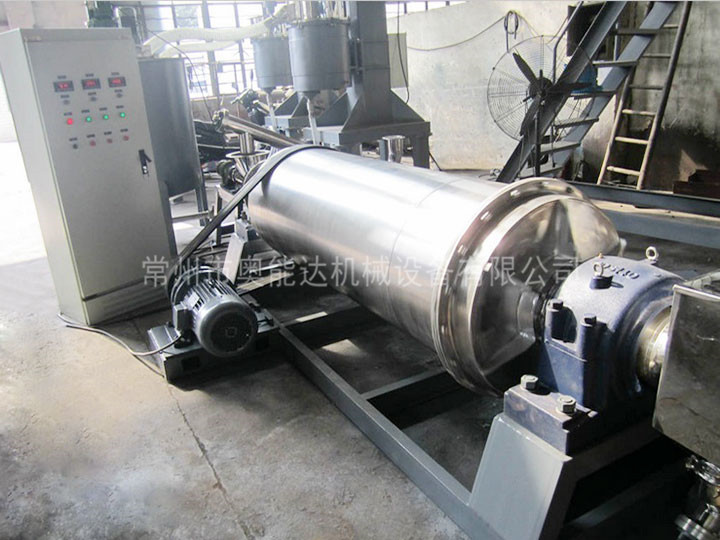 本机为卧式筒形旋转装置,外沿齿轮、链轮或皮带传动,两仓格子型球麻机。